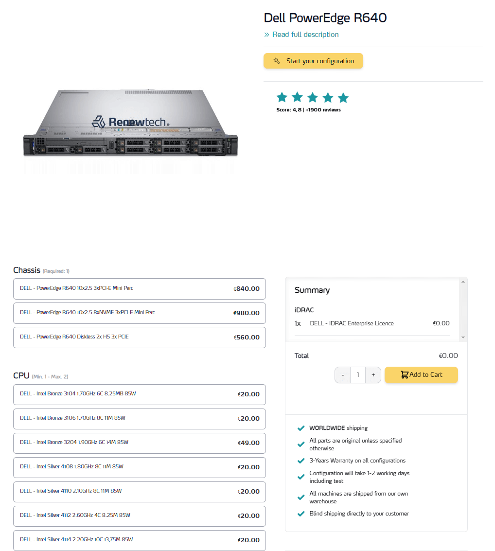Ad esempio, se state configurando un Dell PowerEdge R640, lo strumento vi guiderà attraverso una serie di scelte, dai processori alla memoria e allo storage, dandovi il pieno controllo su come ottimizzare o aggiornare il vostro sistema.